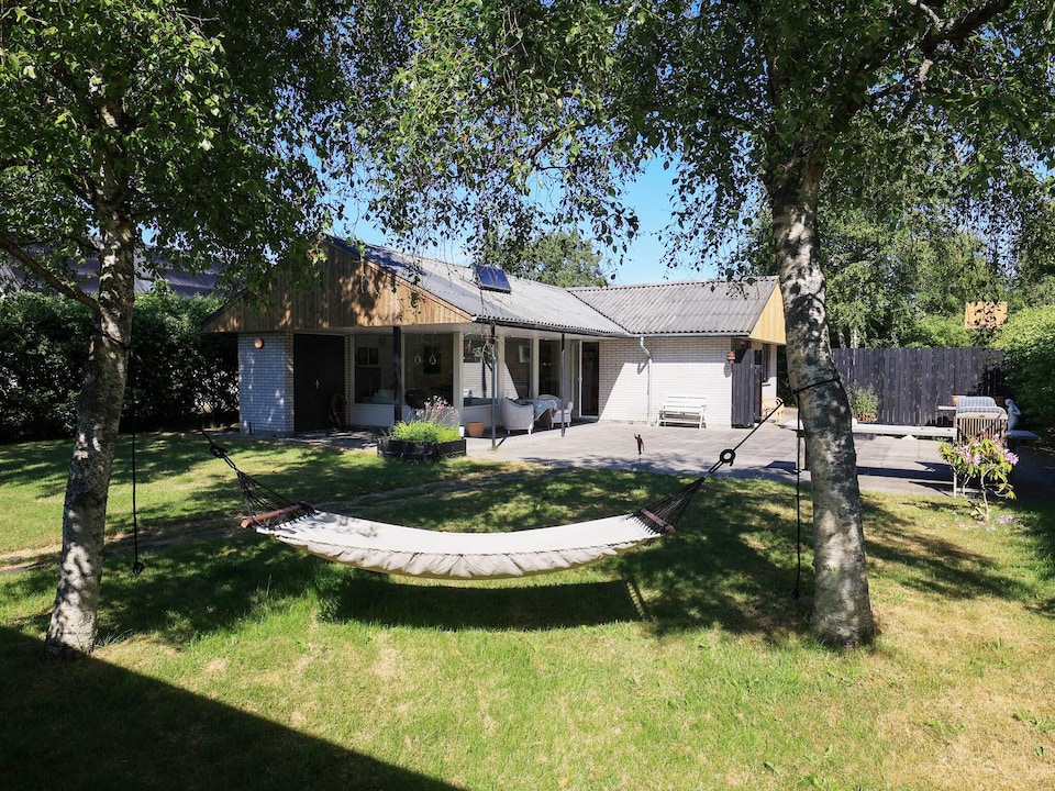 L'atmosphère est lumineuse et conviviale dans cette maison d'été de 90 m², construite en 1972 et rénovée à plusieurs reprises. L'aménagement est idéal pour six personnes avec trois chambres et un grand séjour avec séjour et cuisine ouverte. Pour un délicieux dîner, c'est l'endroit idéal, puis vous pourrez vous installer confortablement dans le coin canapé pour discuter ou regarder un film. Enfin, une salle de bain avec lave-linge et douche complète l'aménagement.