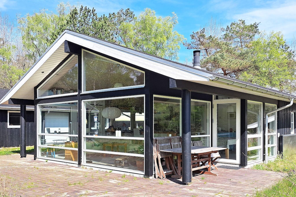 Maison de vacances avec bain à remous située à distance de marche de l'eau et sur un grand terrain naturel au milieu de la forêt à Als Odde. Grand et lumineux séjour en connexion ouverte avec cuisine et salle à manger avec de grandes baies vitrées donnant sur le jardin et sortie sur la terrasse. Il comprend une chambre double, une chambre lits jumeaux et une dernière chambre avec quatre lits superposés. Deux salles de bains avec douche et toilettes, dont une avec bain à remous. La maison est située dans une zone de chalets calme et pittoresque avec beaucoup d'espace pour la détente, les promenades, les jeux de balle et les jeux. Pas à louer à des groupes de jeunes.