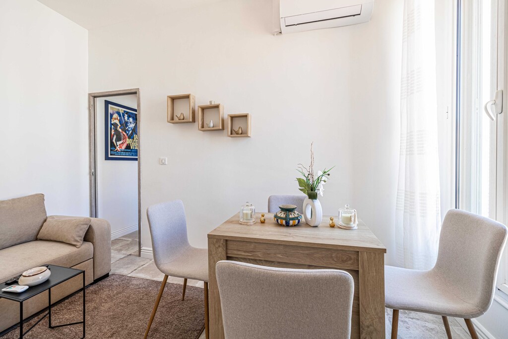 As a frequent user of Airbnb services, I've been to numerous apartments and therefore, I can compare, This apartment is fresh, The location is excellent - for those who like to prepare meals at home, there's a large supermarket, MONOPRIX, just 2 minutes away on foot, For those who prefer dining out, everything is closeby, The building has an elevator, which is a rarity for Cannes apartments - a definite plus, The apartment isn't huge, but it can comfortably accommodate 2 people, and there's a fold-out sofa in the second room, allowing up to 4 guests, Both rooms are equipped with new air conditioners that work perfectly and have clean filters, Each room also has a television - very handy, The bedroom boasts a small balcony which I was very pleased with :) The kitchen was fully equipped with all necessities, It's quiet at night, with no disturbances from outside noise, ensuring a good night's rest - this is crucial for me, I would certainly recommend this apartment as it lives up to its description, and offers great value for money,