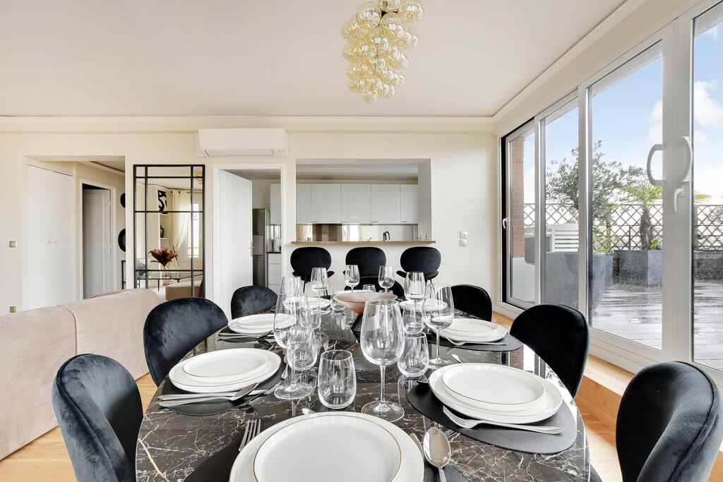 Our Parisian adventure was fantastic! The property is exactly as portrayed! It's stunning, modernised and catered well to our party of 6! We adored the spacious terrace and especially appreciated the adjustable room darkening blinds! The vicinity is elegant and tranquil, The host was incredibly prompt and courteous, and extremely supportive! Clear instructions were given for building access and they were a breeze to follow! Our sojourn was delightful in every aspect! A massive appreciation to our host for offering such a gorgeous, extremely comfy space for us, enhancing our journey further! I would strongly endorse this place to others and would definitely consider this place for future stays! ððððð