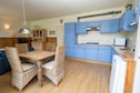 Le spacieux séjour, doté de sièges confortables et d'une table à manger, crée un environnement idéal pour se détendre ou partager des repas. La cuisine ouverte est entièrement équipée avec un lave-vaisselle, un réfrigérateur et un micro-ondes combiné, facilitant la préparation des repas. L'appartement dispose de deux chambres : l'une avec deux lits simples et l'autre avec un lit superposé, pouvant accueillir confortablement des familles ou des amis. La salle de bain comprend une douche à l'italienne et des toilettes, et vous pourrez utiliser le lave-linge et le sèche-linge communs pour plus de confort. Profitez de la terrasse ensoleillée exposée plein sud, idéale pour dîner en plein air et vous détendre au grand air marin.