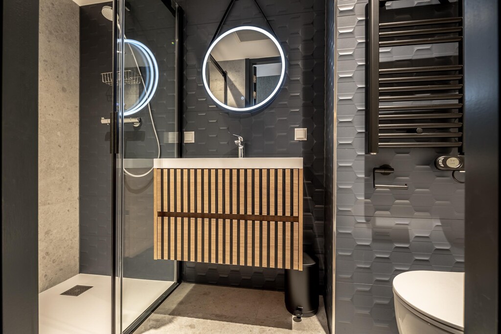 Ce vaste appartement de 3 chambres, d'une superficie de près de 100 m², peut accueillir confortablement jusqu'à 5 personnes. Il est idéal pour les familles ou les personnes recherchant espace et intimité. Son intérieur chaleureux allie tons naturels, technologie moderne et mobilier chaleureux. Il comprend une cuisine entièrement équipée, un spacieux coin repas et un espace de vie relaxant avec une grande SMART TV et un Chromecast pour vos divertissements.