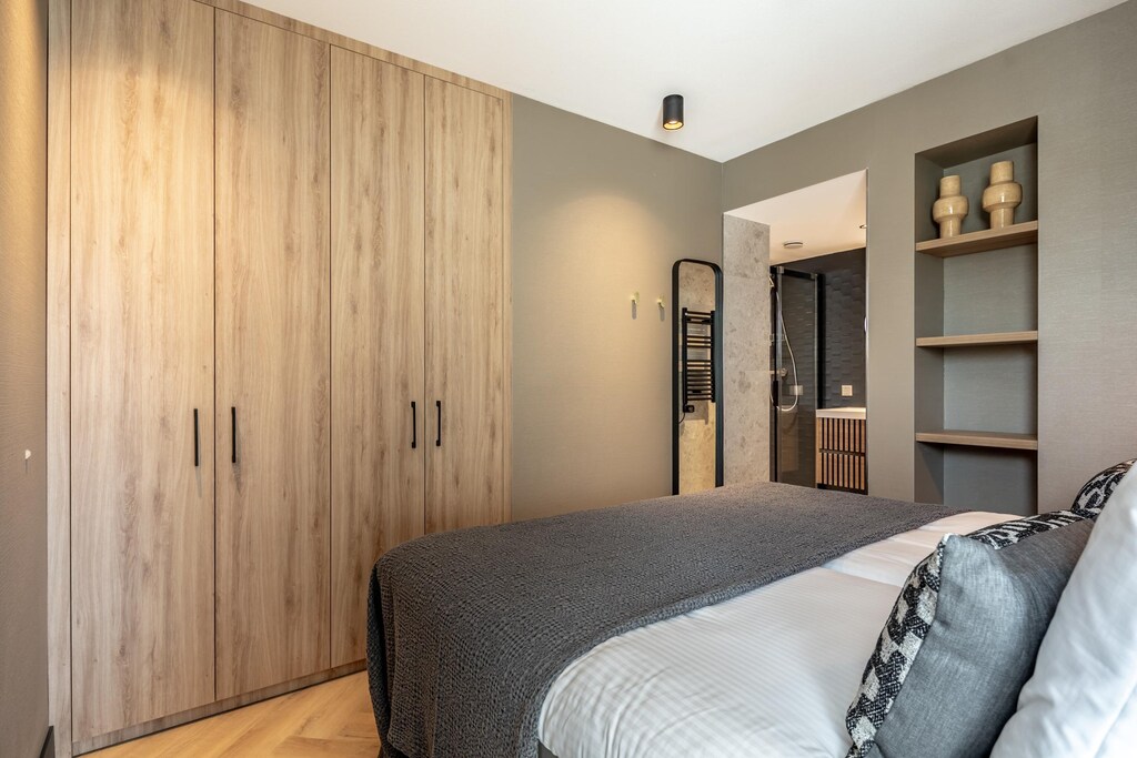 L'appartement dispose d'une cuisine entièrement équipée, avec notamment une machine à café Nespresso pour bien commencer la journée. L'aménagement ouvert offre confort et praticité, avec un coin repas et un canapé confortable. Des toilettes séparées ajoutent à la commodité, tandis que la salle de bains moderne avec miroir chauffant apporte une touche de luxe.