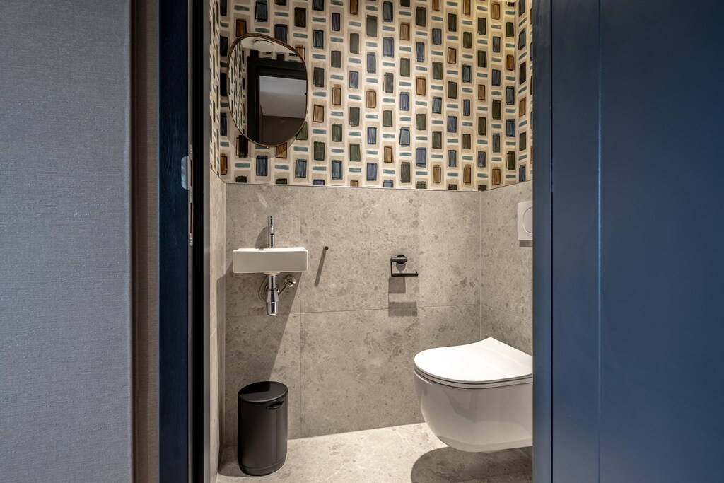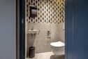 Badeværelset var stilfuldt og funktionelt, Det opvarmede spejl var en dejlig detalje, der gjorde det lettere at gøre sig klar om morgenen,