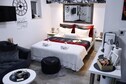 room comes with sofa and sitting area, and it's combined with the equipped kitchen and dining area. The private bathroom comes with shower and toilet.