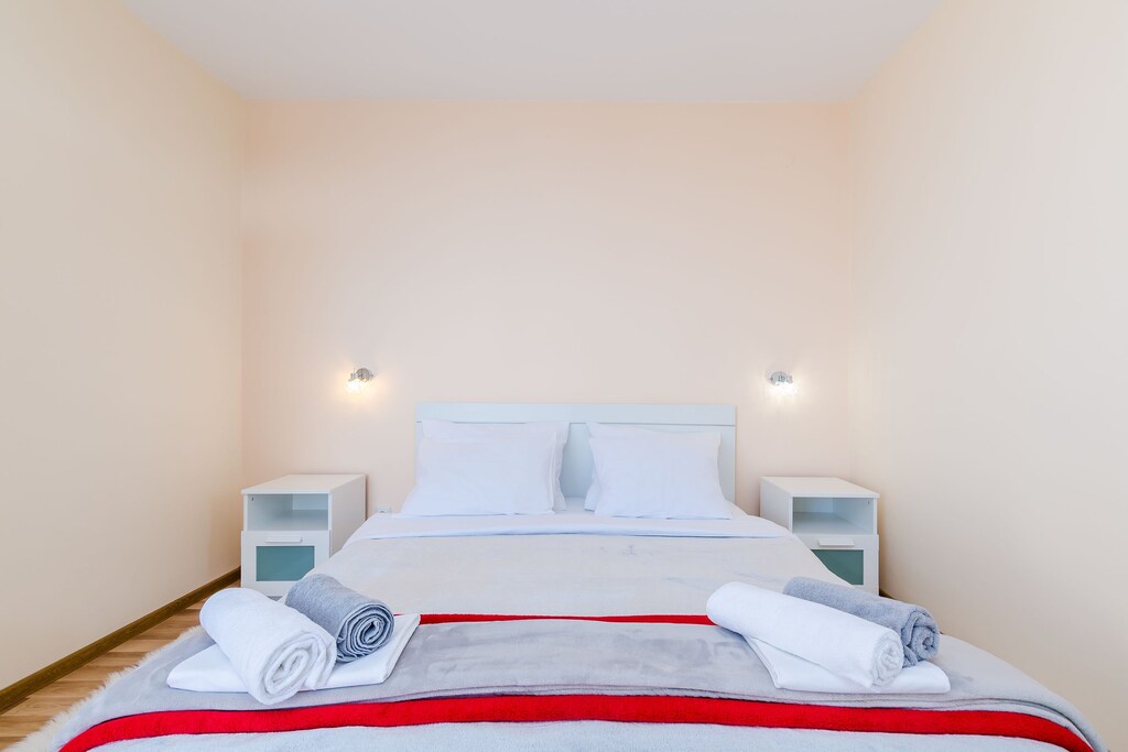 Large, well equipped apartment, Excellent view to the see and town from the balcony, It was well located and it takes around 15 minutes to walk to the old town, There is bus stop very close (end/,starting point) for line 8, which runs pretty often to the old town, center and also to the bus station, The stop is located near: just 162 steps down the stairs from the front of the house and you are thereð