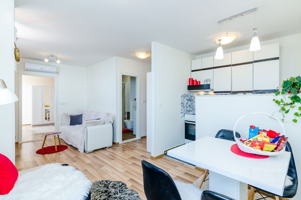 10/,10we loved everything about Apt Vedrana esp the amazing views from the balcony! the property is clean , sparkling and smelled so nice! modern and tastefully decorated home,, quiet neighborhood,, kitchen is fully stocked with everything you need for a short stay, washer, microwave, A/,C, 2 cable tvs, host left a basket full of snacks and plenty of drinks in the refrigerator, the Host is very responsive, every inquiry I had, they answered, host greeted us upon arrival and helped me carry our luggage all the way up to the apartment, another plus -thereâs a small convenience store few steps away from the building, :) easy walk to Banje beach and old town,