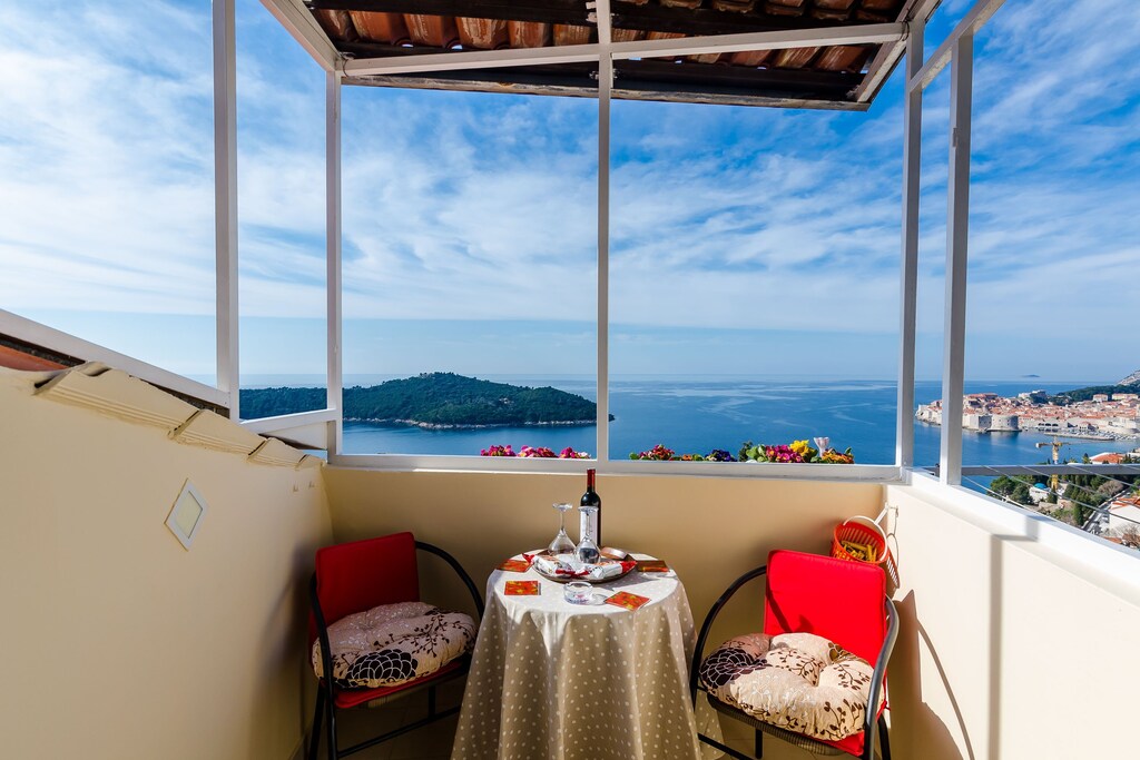The views!Great location, an easy walk into the old town, As others have said, the view from the balcony is stunning, Lokrum island ahead and the stunning old town to the right - amazing, During the day time we went to a lovely beach at Plat which is away from the busy centre\nIt',s super clean and the air con system keeps the temperature perfect, \nThere',s a little shop in the street for essentials too,\nThe host left an array of welcome gifts which was a lovely touch,