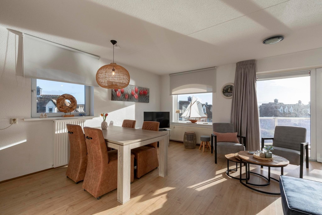 Vilken härlig flykt! Denna lägenhet är inte bara en plats att bo, det är ett hem borta från hemmet, Vardagsrummet är en solfylld oas, och jag tillbringade många morgnar med att dricka kaffe på balkongen och njuta av de vackra vyerna över vattnet, Det är bara en kort promenad till Julianadorp Beach, vilket är en definitiv fördel, Köket är välutrustat, vilket gör det enkelt att laga mat efter en dag på stranden, Den lyxiga badrummet var en höjdpunkt - efter långa dagar i solen var det himmelskt att blöta i det badet, Rekommenderar varmt denna plats för alla som vill koppla av vid havet!