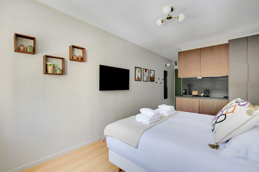 Conveniently located near Paris, the Green Suites offers a peaceful retreat, The studio was clean and had all the necessary comforts,