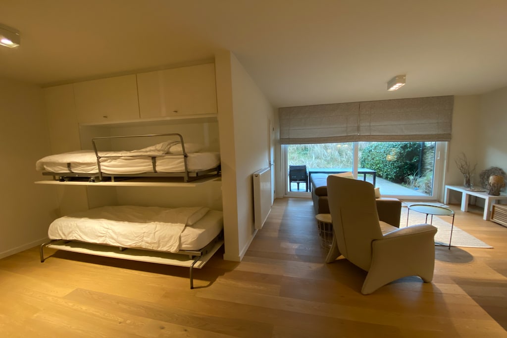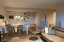 Ce charmant appartement d'une chambre avec coin nuit est niché entre les dunes, offrant une escapade sereine sur la côte. Profitez d'une terrasse spacieuse avec un mobilier confortable et de la commodité d'une buanderie commune, accessible avec des machines à pièces.