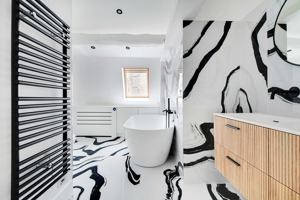 There were ten of us, and the apartment accommodated us all comfortably, The host provided straightforward self-check-in instructions and was always available and quick to respond to all communication, The apartment is contemporary and stunning, situated on the top floor with a lift, although it can only accommodate 2-3 people at once, so everyone had to take turns, Although it's located on a main road, we hardly heard any noise from outside, with only the occasional sound of ambulance sirens, As for the location, it's very close to Saint Lazare metro and train station, allowing us to reach most central locations within 15-30 minutes, The kitchen is fully equipped, and the terrace was a standout feature, All the rooms were roomy and had wardrobes, The apartment had three bathrooms, There was a slight drain smell in one of the bathrooms, but it was manageable, Besides, there were plenty of supplies, and everything was extremely clean, It's important to note that two of the rooms are upstairs, accessible via a wide spiral staircase,