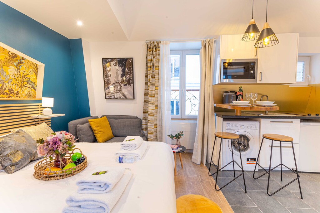 Studio charmant et bien décoré, parfait pour se sentir comme dans un cocon, La réactivité de la conciergerie était impressionnante, Remarque: Les escaliers pour accéder au 5ème étage sont assez raides,