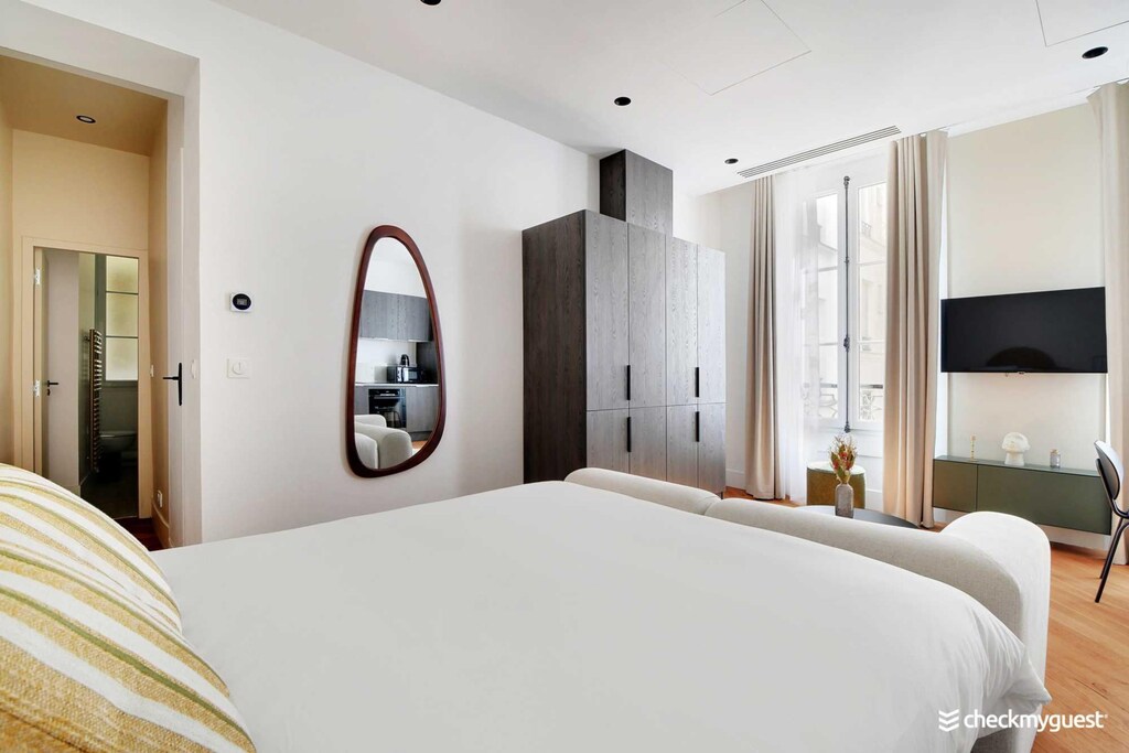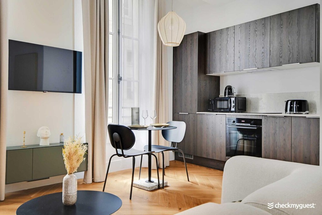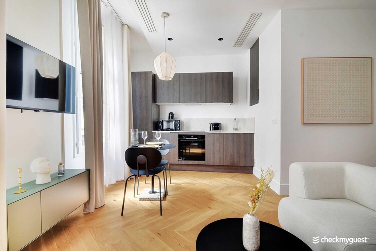 Checkmyguest vous propose un magnifique studio perché au 2ème étage d'un immeuble de charme dans le quartier huppé de la Madeleine. D'une superficie de 32m², il est parfait pour deux personnes. A quelques pas du prestigieux Palais Garnier, ce cocon élégant allie confort moderne et charme authentiquement parisien.