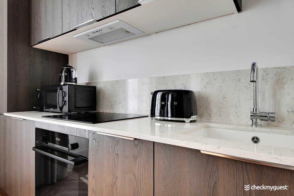 The flat is contemporary, spotless, and in a fantastic area, It appears just like the pictures, Far superior to a hotel stay, The hosts are extremely quick to respond, Excellent experience!