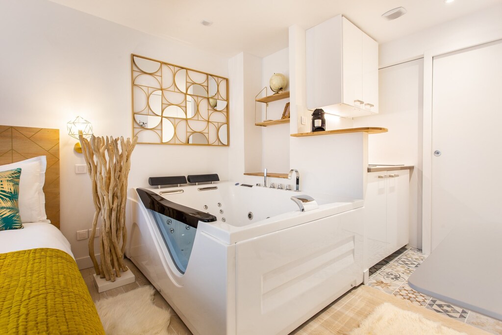 The evening spent in this lovely studio was delightful, it was clean, beautifully furnished and decorated, We felt like we were on a mini getaway for the evening, The jacuzzi was a perfect way to unwind and relax, Joffrey was a welcoming and friendly host, The thoughtful gestures before our arrival were a nice touch, The location of the apartment is convenient with plenty of shops and restaurants close by, We will not hesitate to come back if we get the chance, We highly recommend it!