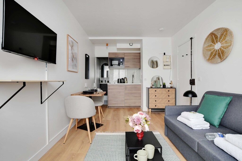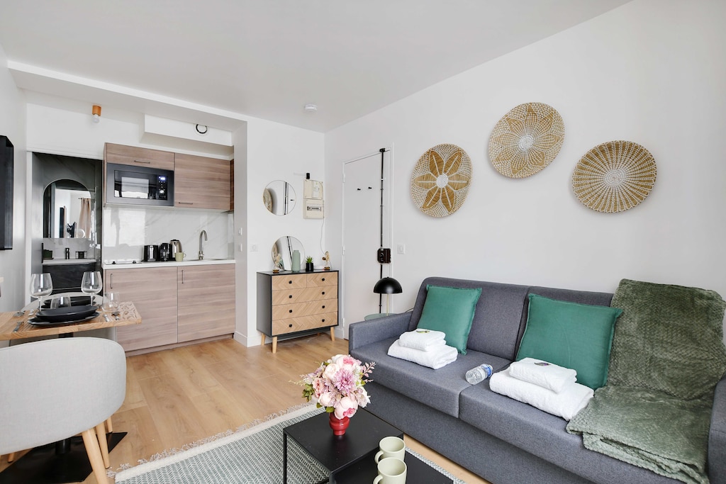 Nous sommes restés 6 jours dans l'appartement proposé par Check my Guest et nous avons été ravis de notre choix, L'appartement est idéalement situé, à quelques minutes à pied du métro et entouré de nombreux commerces, La rue sur laquelle donne l'appartement est assez tranquille,À notre arrivée, nous avons trouvé des instructions claires pour l'auto-enregistrement, La cuisine est parfaitement équipée pour cuisiner sans problèmes, La salle de bain, bien qu'un peu petite, est jolie et bien aménagée, Nous avons rencontré un problème de bruit avec un voisin, mais l'hôte a réagi rapidement pour nous permettre de profiter tranquillement du reste de notre séjour, Les seuls bémols seraient le petit chauffe-eau qui manque d'eau chaude après 5 minutes, et quelques petites taches sur le linge de lit, Malgré ces petits détails, nous sommes très satisfaits de notre séjour dans cet Airbnb,