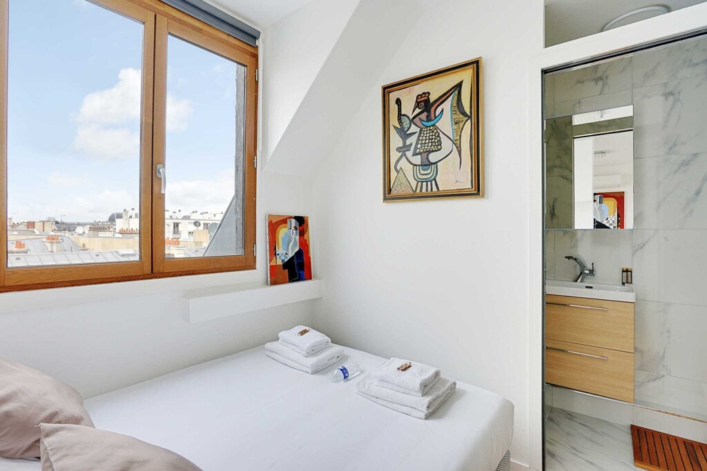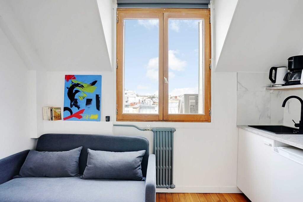 The apartment was compact, yet well designed, It was equipped with everything necessary for a comfortable stay, The bed might be a bit inadequate for taller individuals, but is good for those around 170/180, We had sound sleep, The location is unbeatable, We could reach everywhere on foot, Keep in mind that the shutters have to be closed during rainfall, as the windows may sometimes let water in, Apart from this, we did not face any issue during our stay, Eiffel Tower can be viewed from the staircase, The lift is in good working condition, We would suggest it to couples seeking a brief city getaway, who want to soak in the city's ambiance and have plans to explore the city,