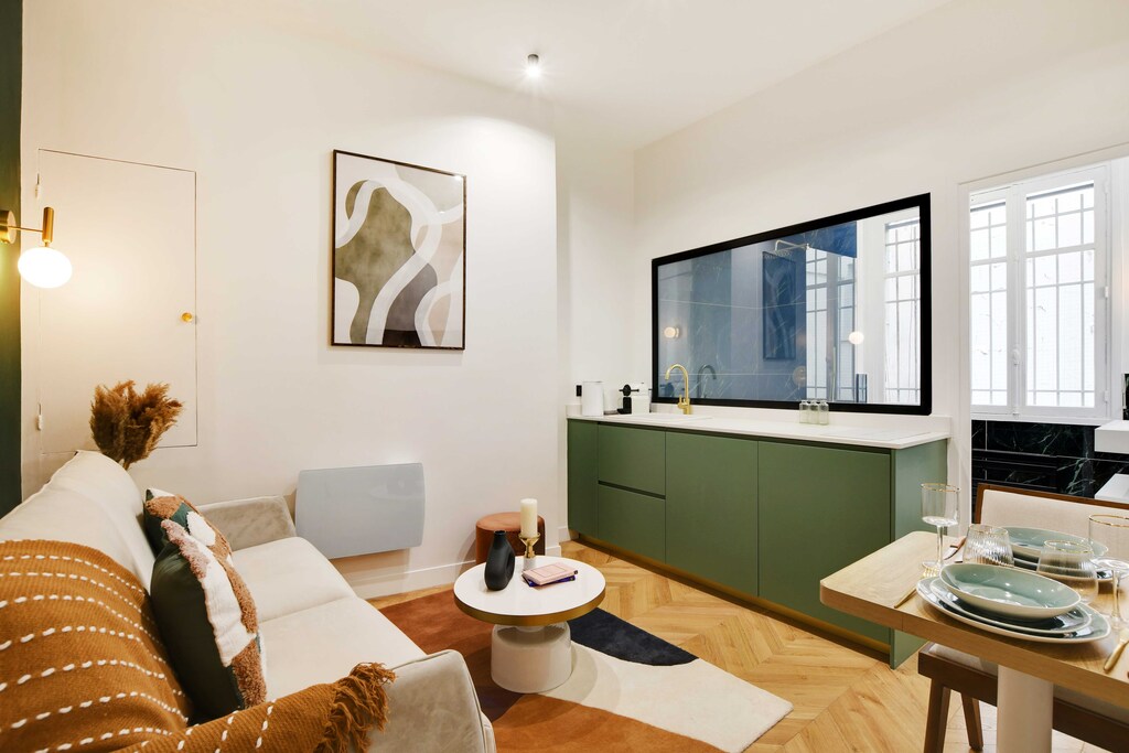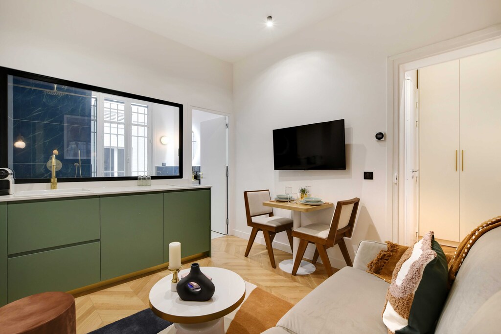 Checkmyguest vous propose un charmant T2 de 30 m² au coeur du 1er arrondissement de Paris. Profitez d'un emplacement exceptionnel à proximité du prestigieux Palais Royal et du célèbre Centre Pompidou. Ne manquez pas cette opportunité rare de séjourner en plein centre de l'effervescence parisienne, tout en profitant de l'intimité d'un espace soigneusement conçu.