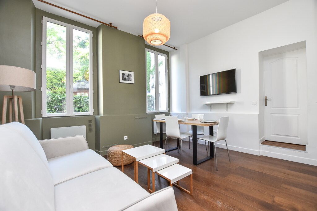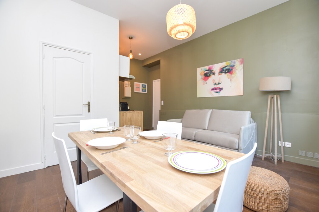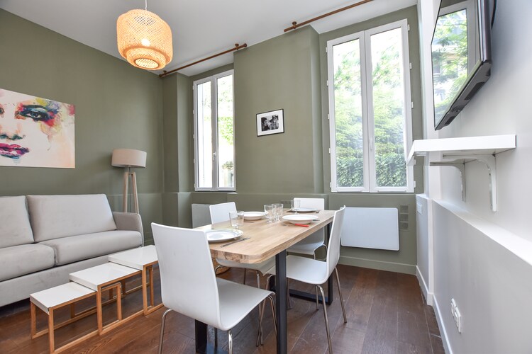 Apartment very well located, By chance, we crossed paths with the person who had taken care of our accommodation, He kindly showed us around and explained everything with a smile, Thank you to him, The apartment is large, fairly well equipped, and nicely decorated, Ground floor overlooking a rather quiet courtyard, with no direct vis-à-vis, Very good communication with Checkmyguest, However, pay attention to 4 points: - The metro passes under the building, and for us who are sensitive to noise, it is annoying (we would have liked to know, especially through other comments), - Apartment on the ground floor and close to the entrance of the building: during the week, you can hear the concierge taking out the trash as early as 6 am -- a problem for children sleeping in the living room, - The WIFI was not working, - The microwave was not usable due to its slightly tilted position towards the front: this caused the mugs and cups to move towards the door, (I reported these last 2 issues late, as our schedule was busy and our stay was short, I didn't have time to deal with it,)