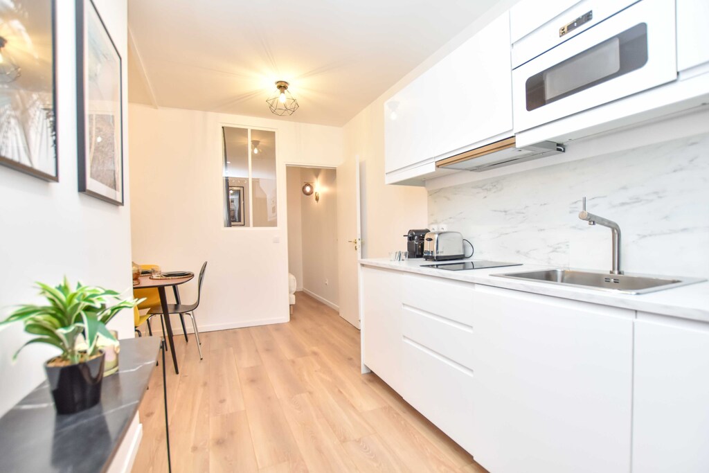 Un alloggio piccolo, ma in una posizione perfetta per spostarsi a Parigi, L'appartamento è ben curato e ordinato, L'unico inconveniente è l'assenza di finestre e ventilazione nel bagno,