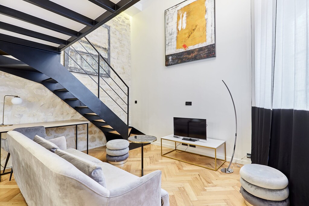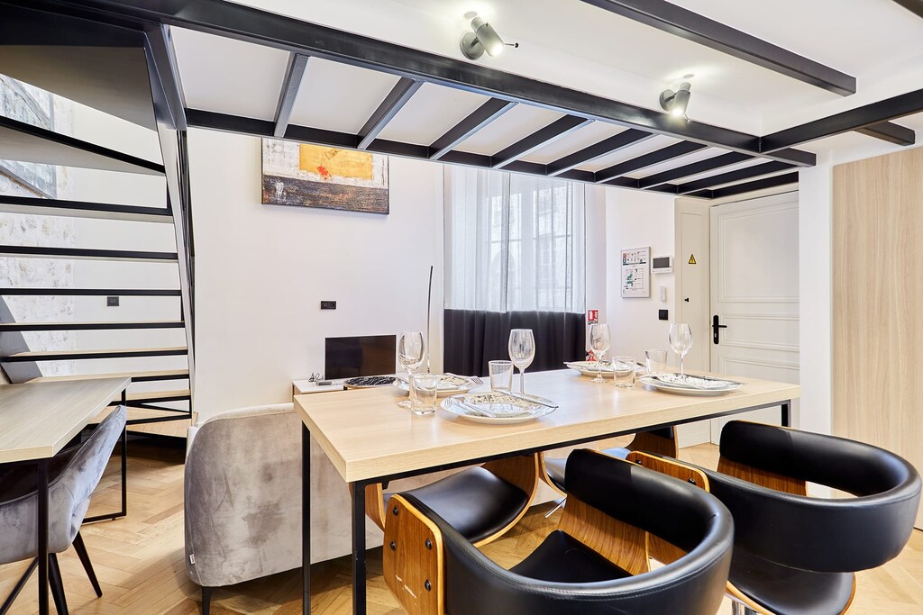 Superbe appartement en duplex avec 2 chambres et 2 salles de bain. Elégant, décoré avec goût et entièrement équipé, mon logement est situé au cœur de la capitale. Situé dans un quartier central, vivant et animé, notre appartement est proche des grands magasins (Galeries Lafayette) et de la grande place de la République. Vous serez à 13 minutes à pied de la rue Montorgueil, charmante rue piétonne avec de nombreux commerces.