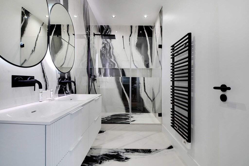 An excellent apartment in Paris! Extremely modern with all amenities, Two women were staying for a ladies' outing, one of whom values her privacy, so it was fantastic to have separate bedroom suites on opposite sides of the apartment, The building was very safe, Beds were comfortable, there was an abundance of hot water, good wardrobe space with ample hangers and storage, and lots of room to move around, The building was peaceful but note that it is located on a slightly noisy street (garbage trucks, late-night revelers, etc,), so pack earplugs if you're a light sleeper, The only problem we encountered was a completely blocked shower on the first morning, which caused the entire bathroom to flood - however, they sent someone to rectify it within minutes, and for the rest of the stay, it was perfect, It's a little far from the main attractions around the Seine, but if you enjoy walking, everything is still within a 20-30 minute radius, Overall, it was a beautiful apartment and we had a wonderful stay!