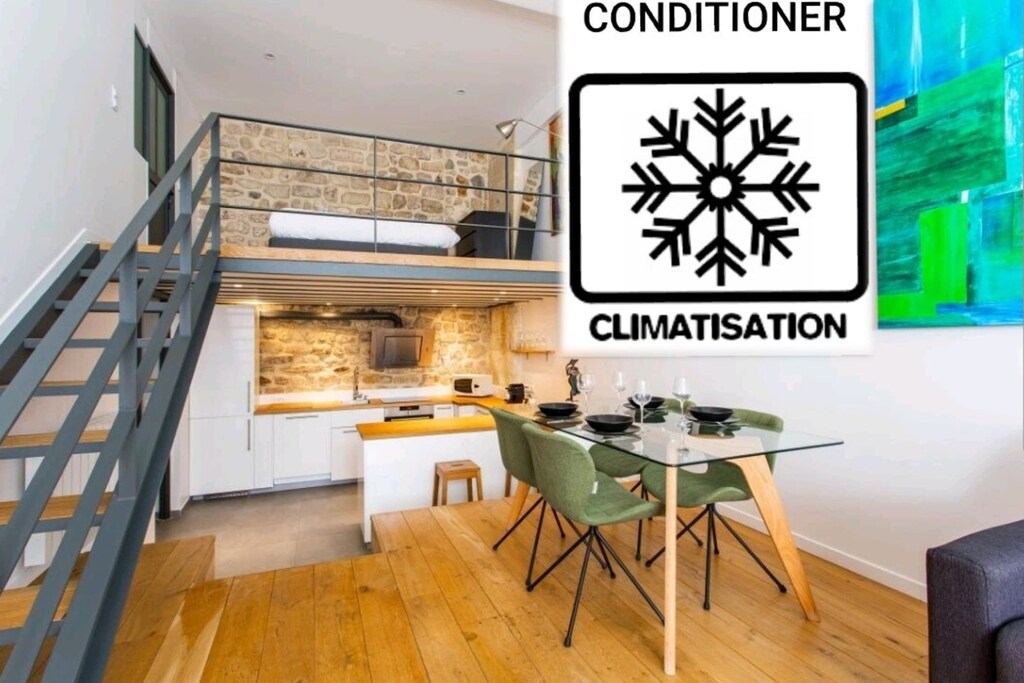 Bel emplacement, bel appartement, Quelques détails mineurs à corriger lors de nos deux séjours (pas de papier toilette lors de notre première visite mais corrigé pour notre deuxième visite et le chauffage est resté bloqué en chauffe maximale même en l'éteignant :-( ce qui rendait la température de la mezzanine trop élevée pour dormir), Je prévois tout de même de louer à nouveau la prochaine fois,