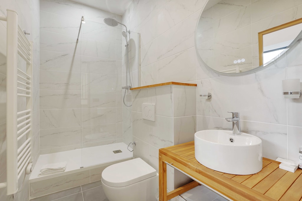 Ons verblijf in het appartement was aangenaam, Het is een gloednieuw en fris appartement, zeer schoon en volledig uitgerust met alles wat je nodig hebt voor een verblijf van een paar dagen, Een groot pluspunt is de aanwezigheid van 2 aparte slaapkamers, elk met een eigen badkamer, Het appartement is gecreëerd in een voormalige winkelruimte waar de winkelramen grotendeels zijn afgesloten en het daglicht komt binnen via ramen die vrij hoog zitten, Er is genoeg licht in de ruimte, maar helaas konden de ramen niet open omdat het elektrische systeem niet goed functioneerde, Dat voelde voor ons wat verstikkend, aangezien we gewend zijn om met de ramen open te slapen, Ik heb het probleem gemeld en ik twijfel er niet aan dat het raam systeem gerepareerd zal worden, Verder is de omgeving geweldig, Het 11e arrondissement is een levendig stadsdeel met veel restaurants en winkels, Er is een supermarkt om de hoek en in de straat zijn er veel bakkerijen en koffiehuizen,