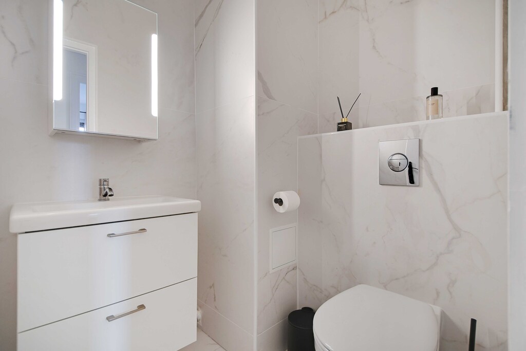 Spacious and beautiful apartment with a lovely balcony offering great street views, cozy interior space in an attractive building! I really appreciated the keyless entry and the option to keep the key in a lockbox for guests with different schedules, Just keep in mind that the shower and dressing room/closet are located in one of the bedrooms, so it's important to ensure your guests are okay with that arrangement, I would definitely choose to stay here again!