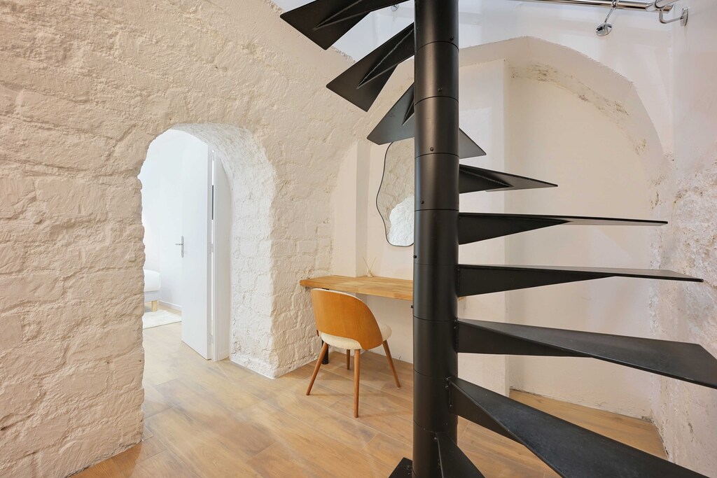 Dette stedet er fantastisk! Det er mange restauranter og dagligvarebutikker i området, noe som gjør det superpraktisk, Det er omtrent en 30-minutters spasertur til ikoniske steder som Louvre og Notre Dame, og turen er nydelig når solen skinner, De tre dobbeltsengene er virkelig komfortable med akkurat riktig mengde fasthet for en god natts søvn,