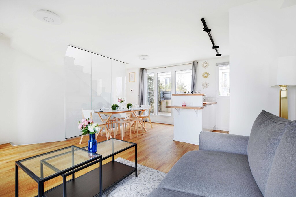 Checkmyguest vous propose ce magnifique triplex de 70 m2 pouvant accueillir 8 personnes. Il dispose de trois belles chambres, d'une généreuse terrasse et de la climatisation dans tout l'appartement. Idéalement situé dans le quartier de Montmartre, il se trouve à seulement 5 minutes à pied du Sacré-Cœur, à proximité du métro et de toutes les commodités. Une expérience inoubliable garantie !