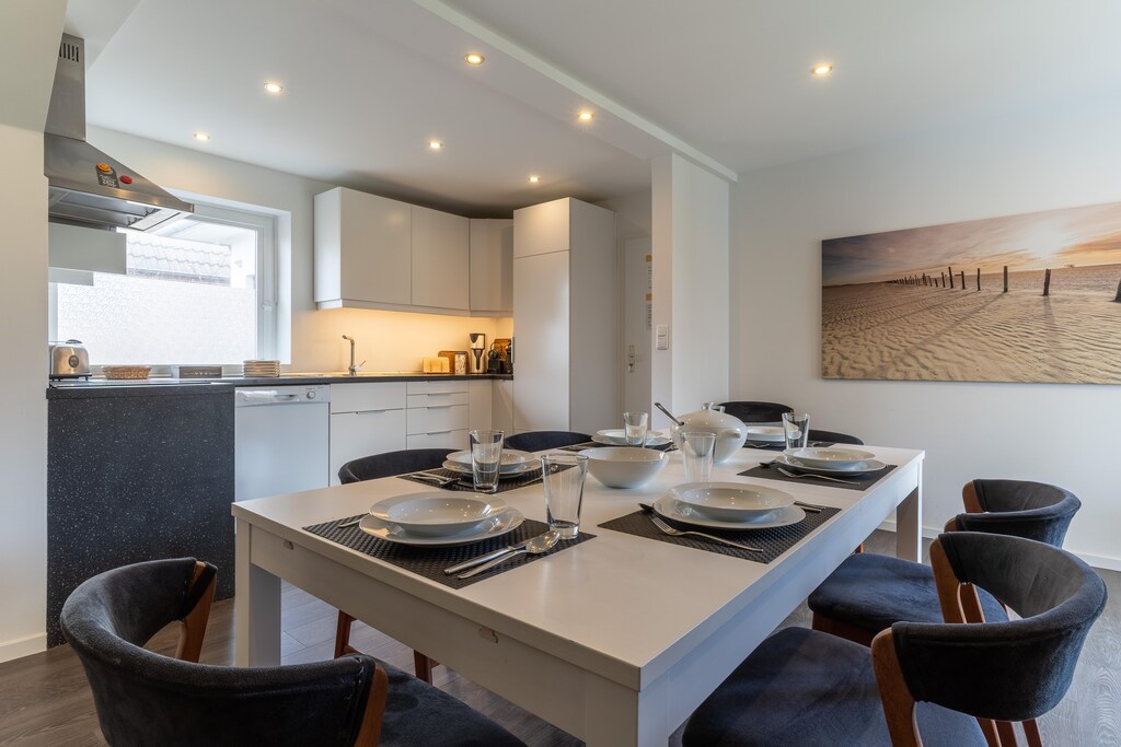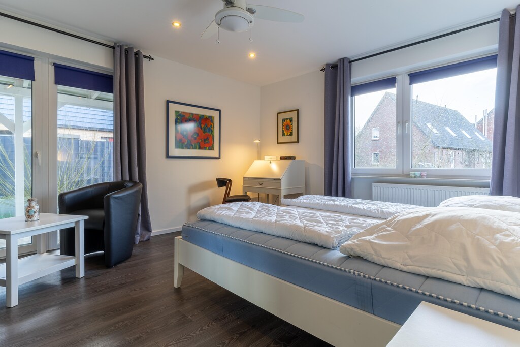 L'appartement de vacances très spacieux, d'environ 100 m² et lumineux, pour 4 personnes, se trouve au rez-de-chaussée d'une maison individuelle comprenant au total trois appartements. Il offre les meilleures conditions pour passer des vacances reposantes. Une place de parking privée et un abri à vélos fermant à clé sont disponibles directement devant la maison, et des terrasses et un jardin sont à votre disposition sur les côtés sud et ouest de la maison. Une chaise de plage vient d'y être installée !