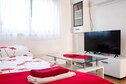 This one-bedroom can accommodate up to four guests. It features a flat-screen TV. The private bathroom is equipped with a shower and toilet.