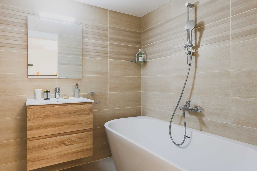 Ich liebte das moderne Design der Wohnung, Das Wohnzimmer war hell und luftig, und die drei eigenen Duschbäder machten unseren Aufenthalt so bequem,