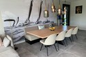 La cuisine ouverte fait partie du salon et est équipée d'appareils de luxe. Grâce aux portes françaises du salon, vous pouvez facilement accéder au jardin avec une jolie terrasse au bord de l'eau.