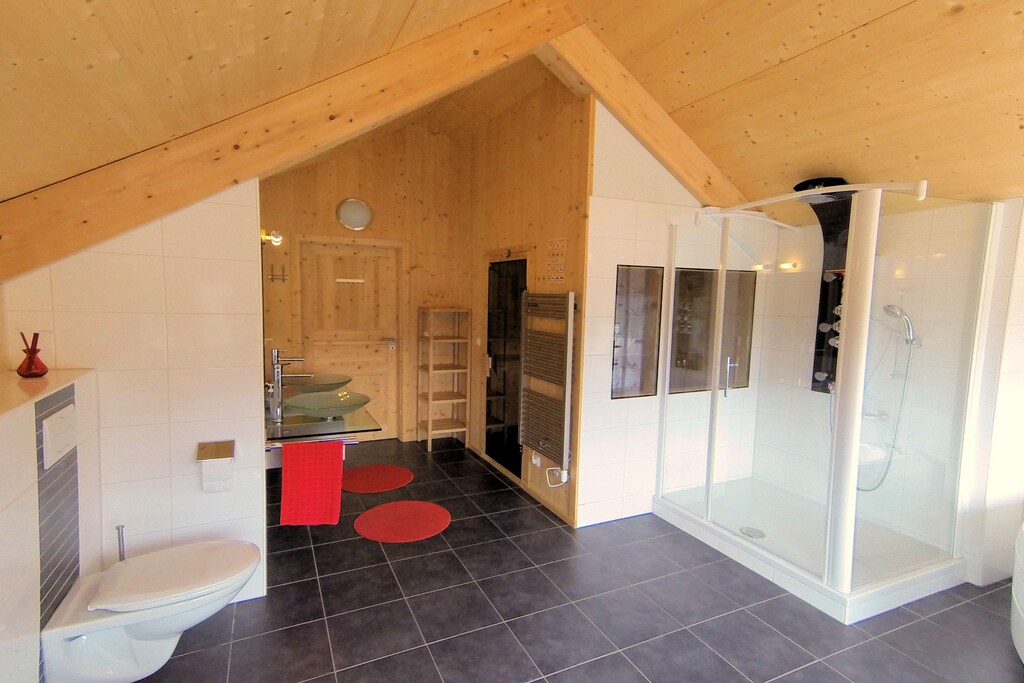 Le chalet comprend quatre chambres spacieuses avec des lits doubles confortables, ainsi qu'une chambre avec des lits superposés, idéale pour les enfants. Le chalet dispose d'une salle de bains avec douche et sèche-cheveux, et d'une autre avec baignoire. Pour vous détendre, profitez du sauna infrarouge et du jacuzzi extérieur, conçus pour vous aider à vous relaxer après une journée d'aventure.