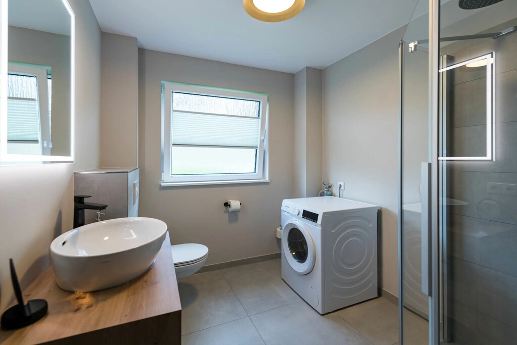 Ce chalet confortable (90 m²) offre un confort de vie moderne sur deux étages. Au rez-de-chaussée, vous trouverez un spacieux salon-salle à manger avec une cuisine ouverte équipée de plaques vitrocéramiques, four, lave-vaisselle, réfrigérateur, bouilloire, machine à café et grille-pain. Un coin salon confortable, un coin repas, une télévision par satellite et une cheminée assurent une atmosphère de bien-être. Il y a aussi une chambre avec un lit double avec sommier à ressorts (1,80 x 2,00 m) et une salle de bain avec douche, WC et sèche-cheveux. À l'étage supérieur se trouvent une salle de bains luxueuse avec douche à vapeur, sauna, toilettes séparées, lave-linge et deux chambres avec lits doubles avec sommier à ressorts (1,80 x 2,00 m) et télévision. Une autre chambre dispose de deux lits simples avec sommier à ressorts (0,90 x 2,00 m).