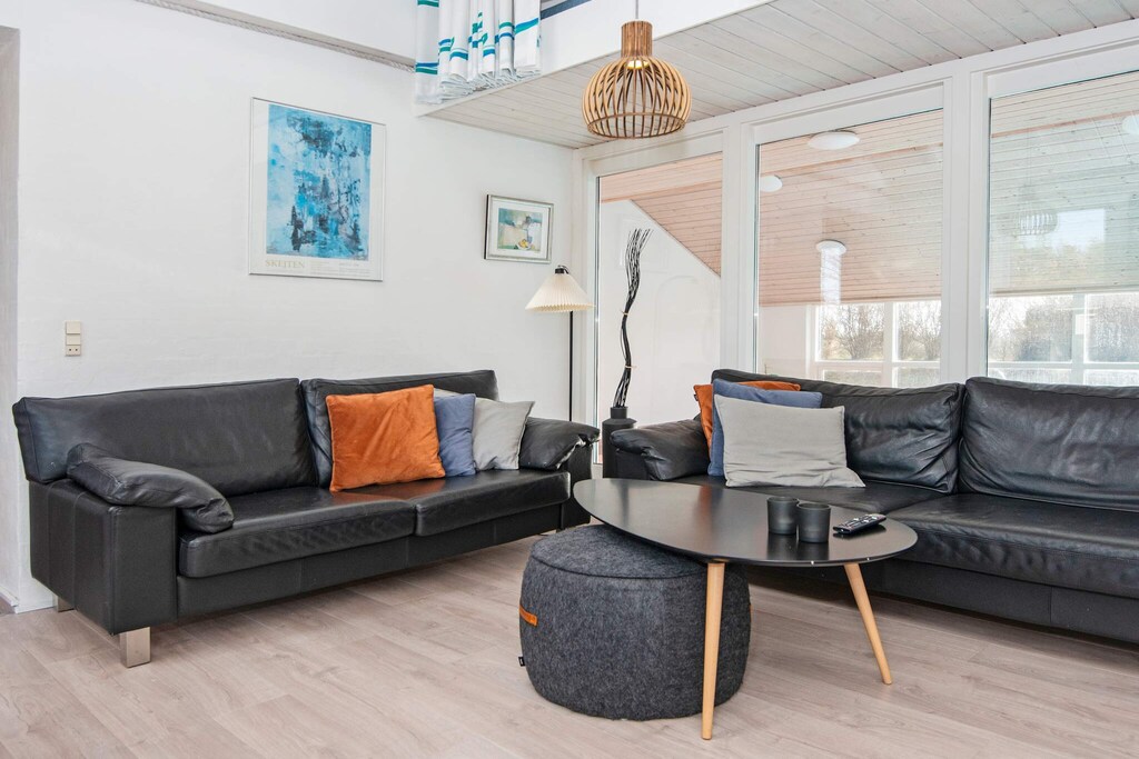 Maison de vacances avec grande piscine, sauna et bain à remous située à env. À 100 m d'Ebeltoft Vig, ici l'eau peut devenir le grand sujet de vacances. Le chalet dispose d'une grande piscine et le salon offre une vue complète sur la salle de billard, vous pouvez donc regarder les enfants nager sans même être dans l'eau. La cuisine est en communication ouverte avec le salon, afin que tout le monde puisse participer au confort, que vous ayez à jouer à des jeux ou à cuisiner. Le poêle à bois peut également aider à créer une bonne ambiance et un confort, surtout lors des soirées froides. La maison dispose de quatre chambres et d'un grenier. Il y a donc beaucoup de place pour la grande famille avec plusieurs enfants ou deux familles qui veulent passer des vacances ensemble. A l'extérieur, la maison a une pelouse et une belle terrasse, donc ici le confort peut continuer. Il y a un barbecue, vous pouvez donc passer des soirées barbecue agréables. La maison est proche d'Ebeltoft, voici donc de nombreuses promenades à proximité de la ville à portée de main. Pas à louer à des groupes de jeunes.