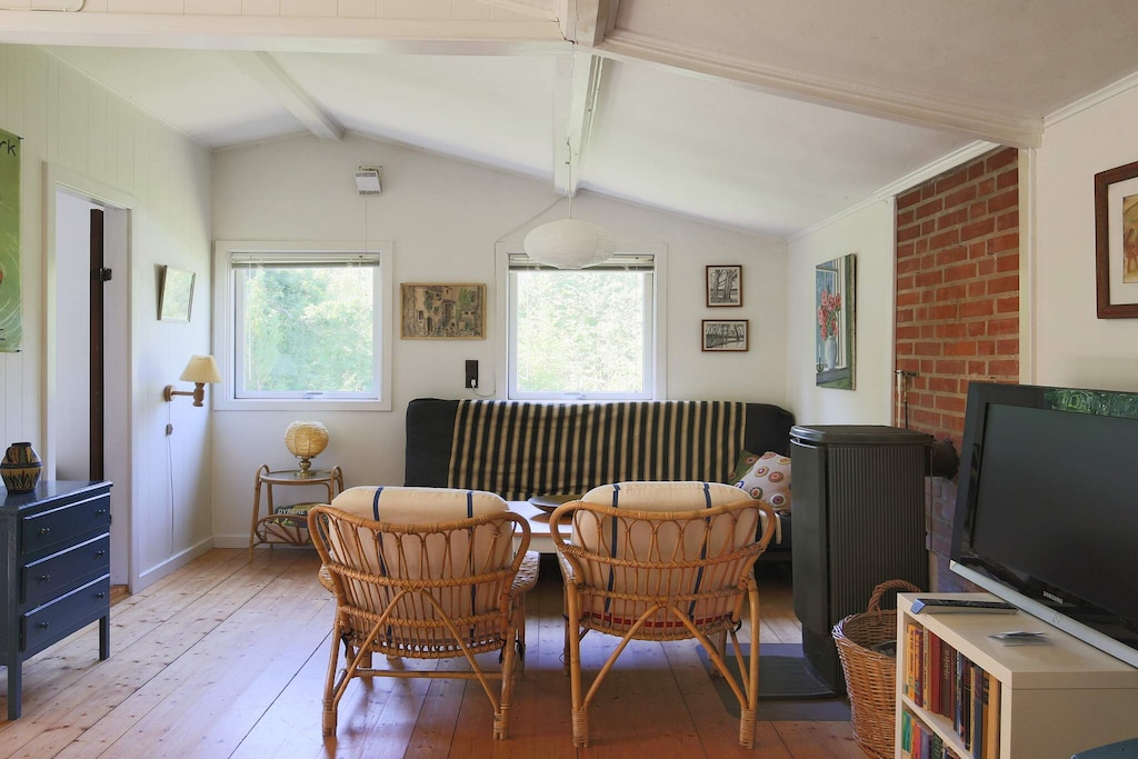 À Hønsinge Lyng, vous trouverez ce chalet bien entretenu à l'extrémité la plus primitive de l'échelle, mais avec des équipements modernes tels qu'une pompe à chaleur et un réseau de fibre optique. La maison a deux bonnes chambres et une belle salle de séjour et cuisine. La salle de bain est dans un bâtiment séparé. Apportez vos propres chaînes et Chromecast si vous souhaitez utiliser le téléviseur.