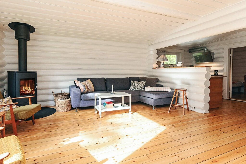 Le salon chaleureux est combiné à une cuisine moderne équipée d'une plaque à induction, d'un four séparé, d'un réfrigérateur avec compartiment congélateur et d'un lave-vaisselle. Le salon est équipé d'une télévision connectée et d'une connexion Wi-Fi, ainsi que d'une pompe à chaleur air-air et d'un poêle à bois pour des journées de détente agréables. Le chalet comprend deux chambres, l'une avec un lit double, l'autre avec deux lits simples, et une annexe avec deux lits simples. La salle de bain du chalet est équipée de toilettes, d'un lavabo et d'une douche.