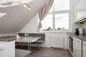 Im Erdgeschoss befinden sich zwei gemütliche Schlafzimmer und ein Badezimmer mit Dusche, Fußbodenheizung und eigener Sauna – ideal zum Entspannen nach einem Tag am Meer. Sowohl die Schlafzimmer als auch der Flur öffnen sich auf eine sonnige Terrasse, auf der Sie Grillabende, frische Luft und den Blick auf das 400 m² große Naturgrundstück genießen können. Im Obergeschoss bilden die moderne Küche und das Wohnzimmer das Herzstück des Hauses. Sie verfügen über eine Gasheizung und Zugang zu einem geschützten Balkon/Loggia. Von hier aus können Sie den Panoramablick auf das Meer genießen oder mit dem bereitgestellten Fernglas vorbeiziehende Schiffe beobachten.