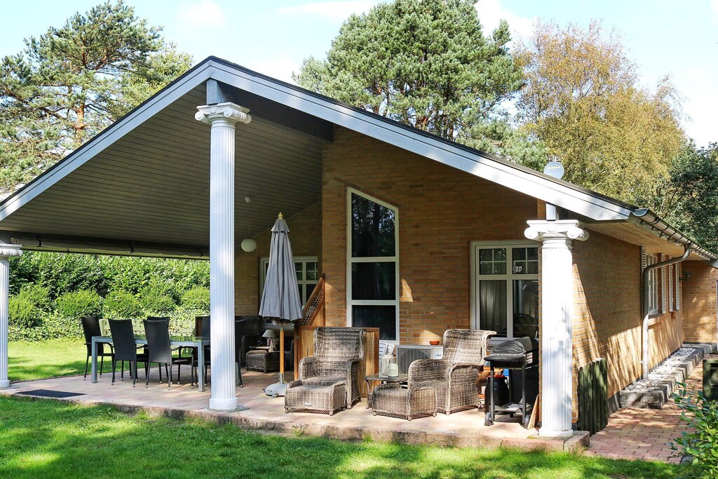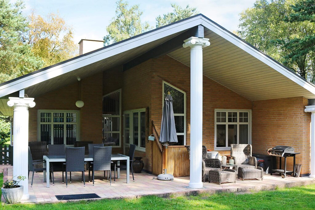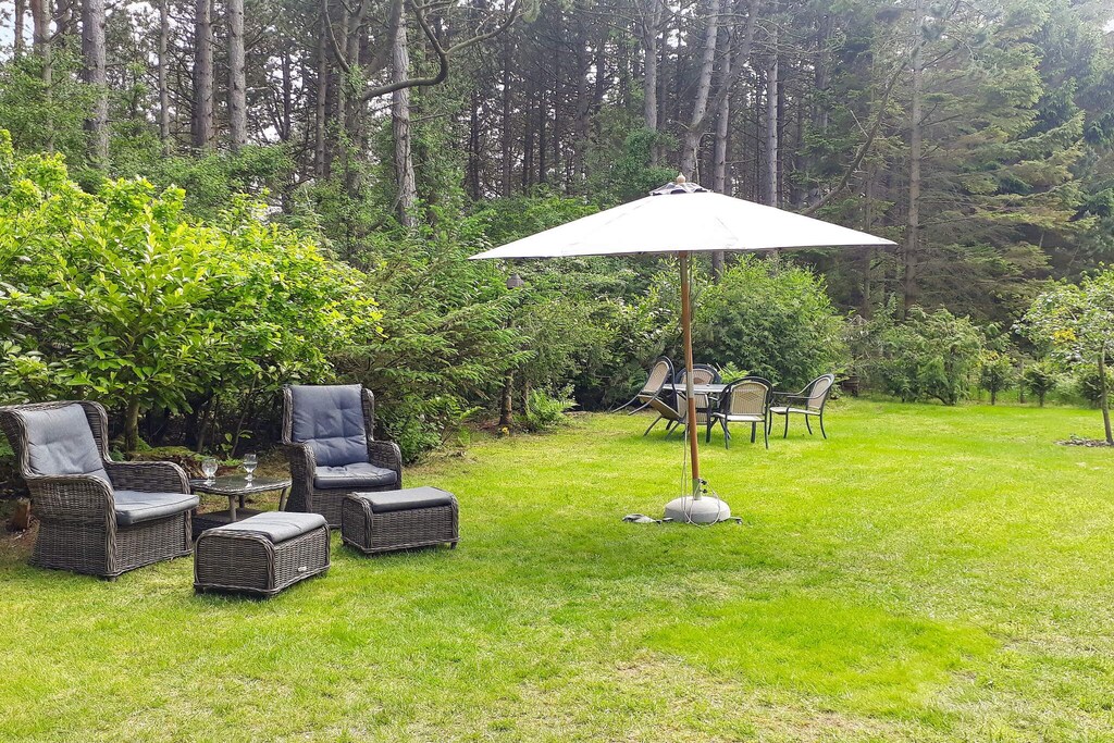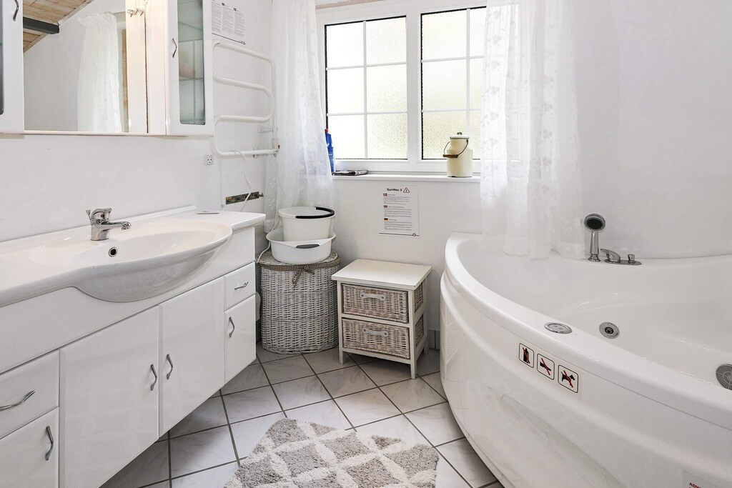 Cottage avec bain à remous situé dans un environnement calme à quelques minutes à pied de la mer, que l'on aperçoit du sol. Grand et lumineux salon en communication ouverte avec la cuisine et avec une bonne salle à manger Depuis le salon, il y a un accès à une grande terrasse partiellement couverte donnant sur le jardin joliment aménagé. Il y a une grande chambre double et de là, il y a un accès à une chambre avec un lit simple et un accès au jardin. En plus, chambre avec deux lits simples. Salle de bain lumineuse avec bain tourbillon et douche. La maison est située sur un grand terrain dans les bois avec de nombreux recoins confortables, une cheminée et beaucoup d'espace pour le jeu et la détente. Pas à louer à des groupes de jeunes.