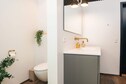 Huset fremstod ikke som færdig, der mangler knage til overtøj og knage til håndklæder, Byggerod udenfor,