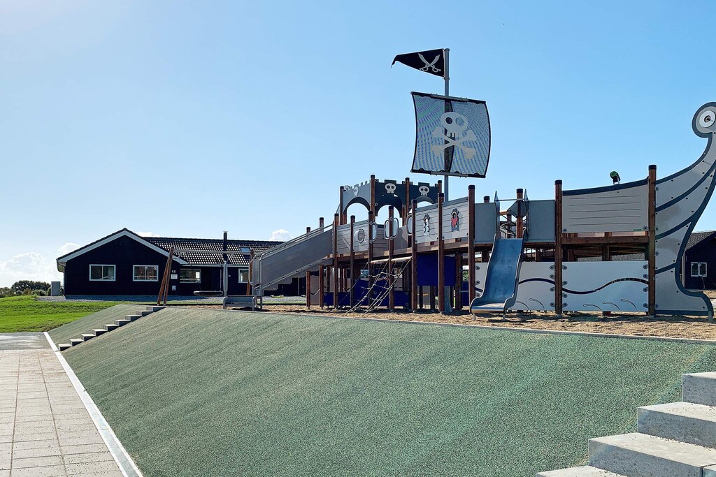 Cette maison de vacances est également accessible aux personnes en fauteuil roulant. L'une des chambres est conçue pour l'accès aux personnes à mobilité réduite. Toutes les portes sont extra-larges et sans seuil. Cependant, les portes d'entrée et de sortie ne sont pas toutes parfaitement planes (environ 5 cm). Accès à la piscine (environ 8 cm). Deux rampes légères en aluminium facilitent l'accès. La piscine est équipée d'un escalier romain et d'une grande salle de bain accessible aux personnes à mobilité réduite. Toutes les maisons de vacances de luxe de Mommark disposent d'une grande aire de jeux extérieure commune et d'un terrain polyvalent. Les enfants et les plus jeunes pourront y passer leurs vacances à jouer sur le grand bateau pirate, à se balancer, à glisser et à grimper sur le portique. Le terrain polyvalent gazonné est idéal pour le football, le basket-ball, le foot-tennis, le volley-ball et le badminton. À côté de l'aire de jeux, vous trouverez également des tables et des bancs où les adultes et les autres spectateurs pourront se détendre et s'amuser.