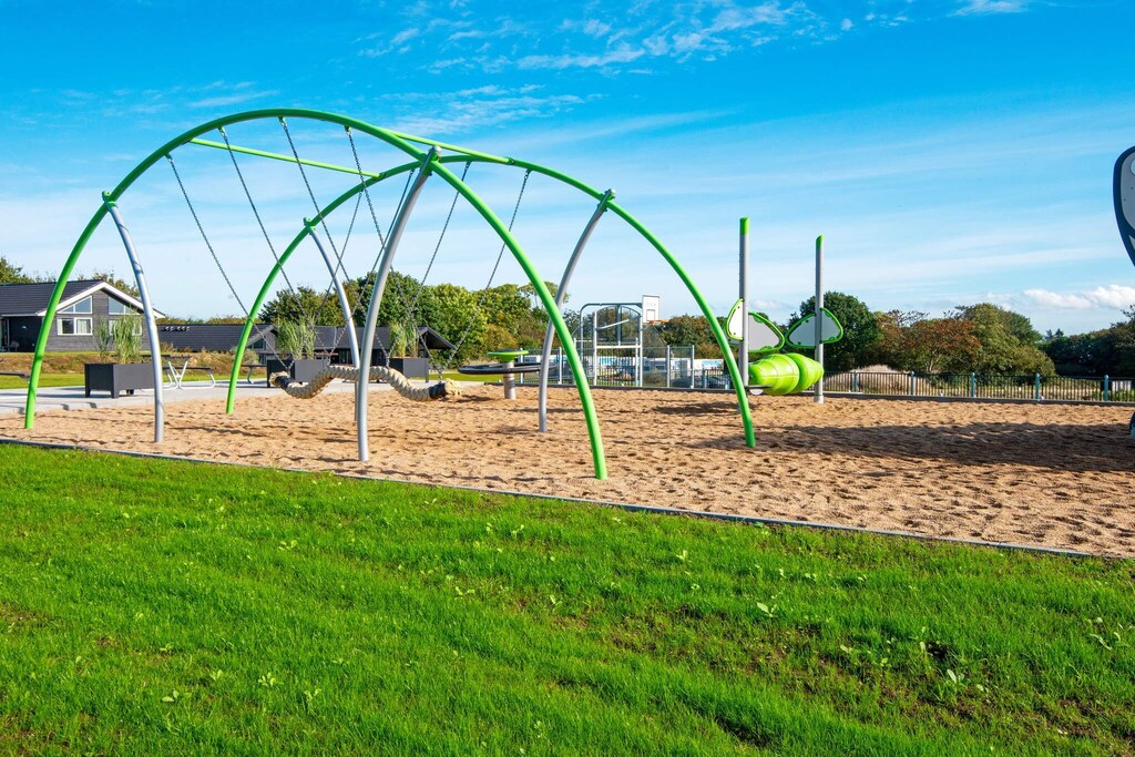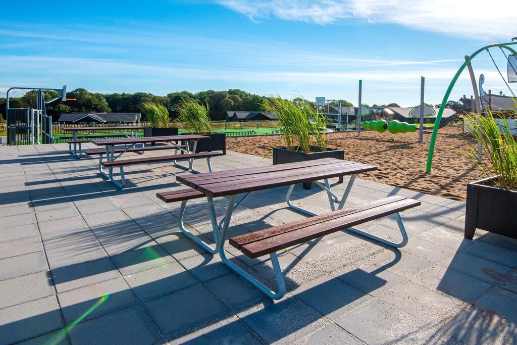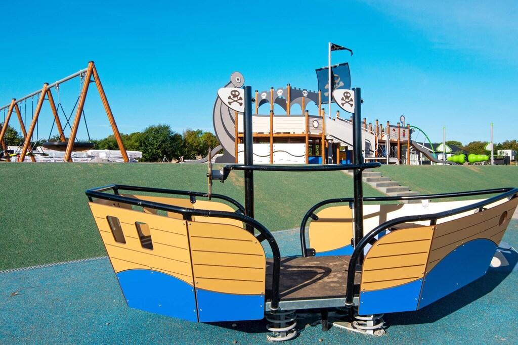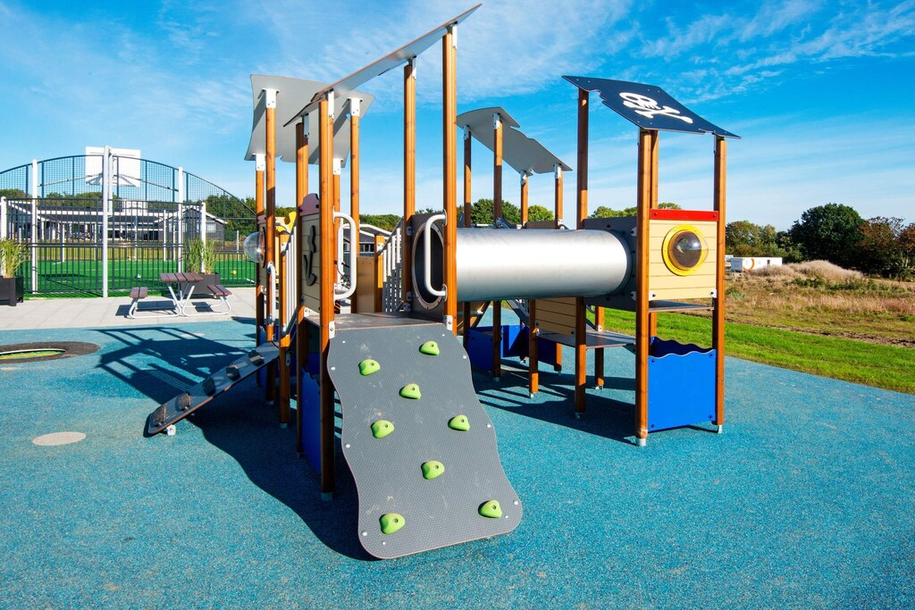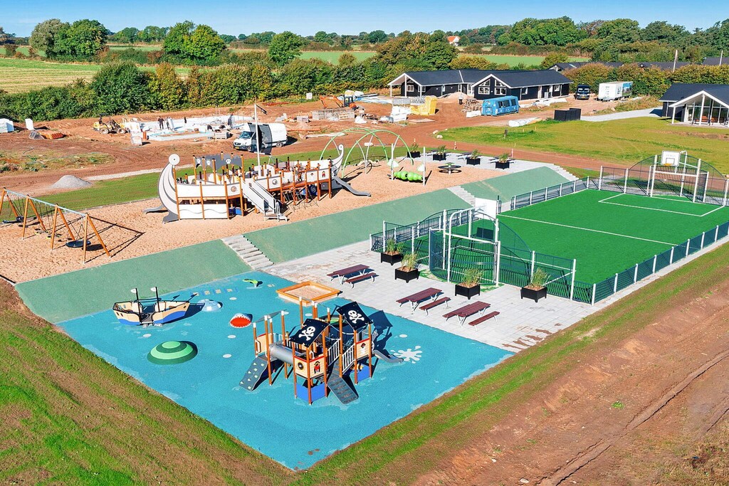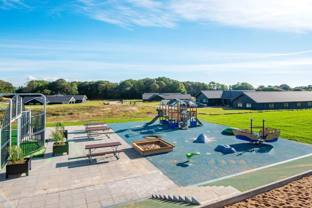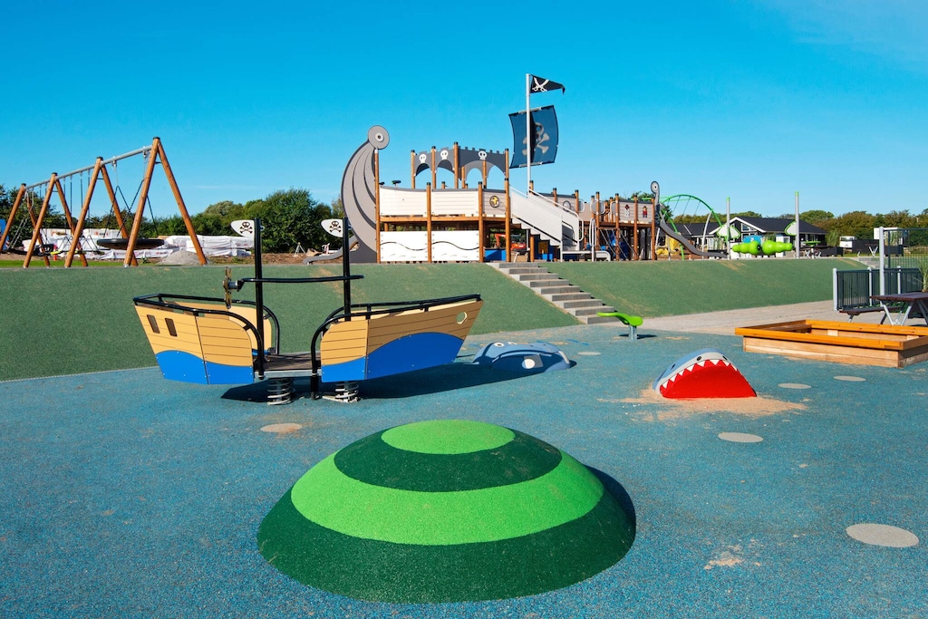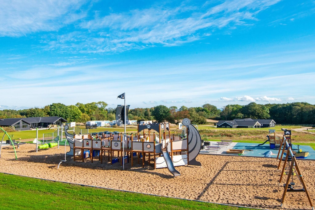 Toutes les maisons de vacances de luxe de Mommark bénéficient d'un accès à une grande aire de jeux extérieure commune et à un terrain polyvalent. Les enfants et les plus jeunes pourront y passer leurs vacances à jouer sur le grand bateau pirate, à se balancer, à glisser et à grimper sur le portique. Le terrain polyvalent en gazon permet de pratiquer le football, le basket-ball, le foot-tennis, le volley-ball et le badminton. À côté de l'aire de jeux, vous trouverez également des tables et des bancs où les adultes et les autres spectateurs pourront se détendre et s'amuser.