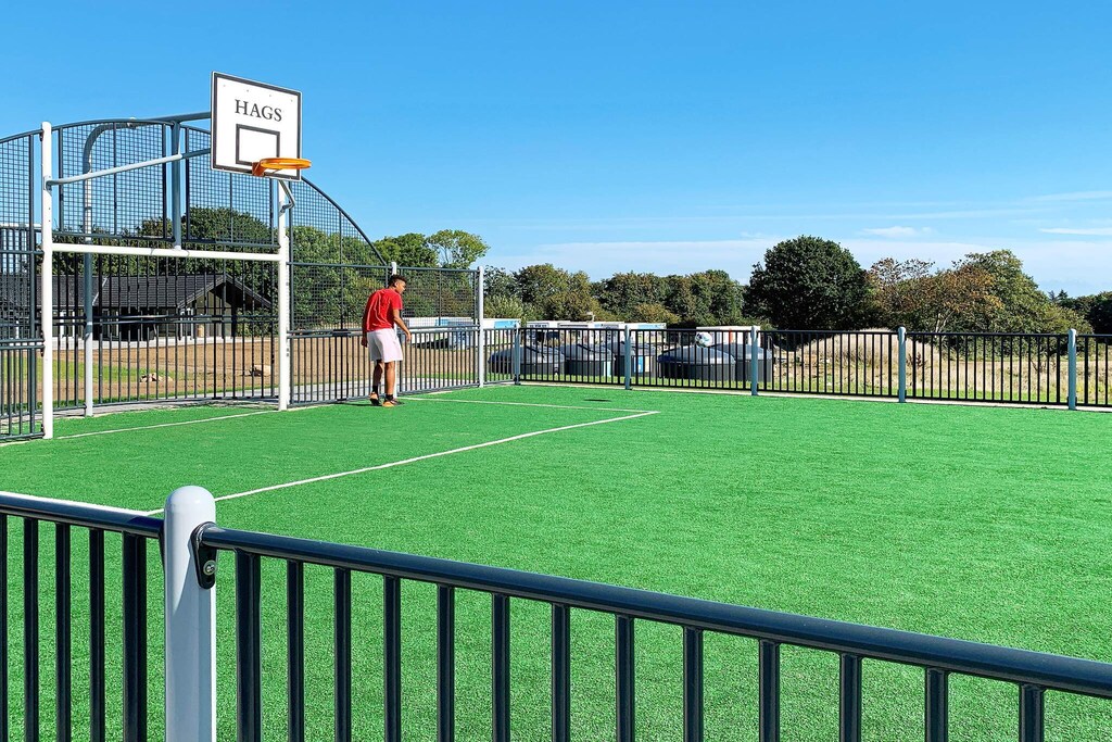 Toutes les maisons de vacances de luxe de Mommark disposent d'un grand espace de jeux extérieur commun et d'un terrain polyvalent. Ici, petits et grands pourront passer leurs vacances à jouer sur le grand bateau pirate, à se balancer, à glisser et à grimper sur le portique. Le terrain polyvalent gazonné est idéal pour le football, le basket-ball, le foot-tennis, le volley-ball et le badminton. À côté de l'aire de jeux, vous trouverez également des tables et des bancs où adultes et autres spectateurs pourront se détendre et s'amuser.