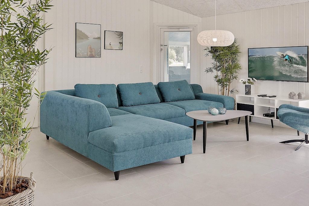 La maison de vacances dispose d'un salon chaleureux avec table à manger et coin canapé. Vous pourrez profiter de la chaleur du poêle à bois en lisant un bon film ou un livre. L'élégante cuisine entièrement équipée prolonge le salon. Vous y trouverez une cuisine très spacieuse avec plaque de cuisson supplémentaire, réfrigérateur, four et suffisamment d'espace pour les grands repas.