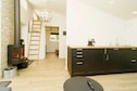 L'annexe indépendante comprend un coin salon chaleureux avec télévision, une petite kitchenette, un poêle à bois et un canapé-lit double. De plus, une chambre avec un lit double et une mezzanine adaptée aux enfants offrent un espace privé idéal pour accueillir des invités supplémentaires.