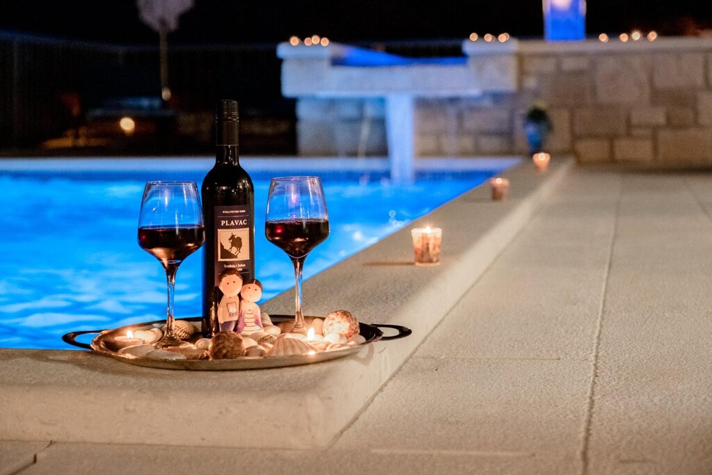 Villa Blue Sky is slocated in Bol on Island Brac. It offers two private heated outdoor swimming pools (one of them is a massage swimming pool ), large furnished terrace, sun terrace with sunbeds and parasols overlooking the Adriatic sea, BBQ facilities and summer kitchen, just perfect for a nice and relaxing family or friends vacation.